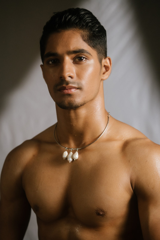 Brass made silver plated, real baroque pearl