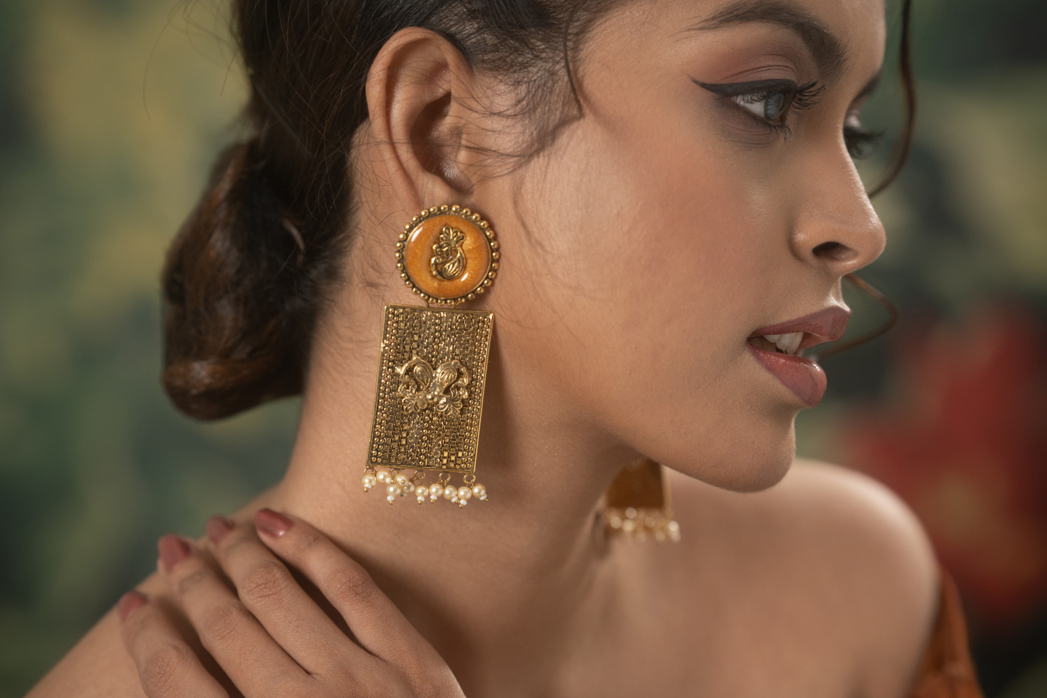 Beautifully crafted hand made jewelry, with a coating of 21k gold. Used resin work on top to enhance its beauty a little more!