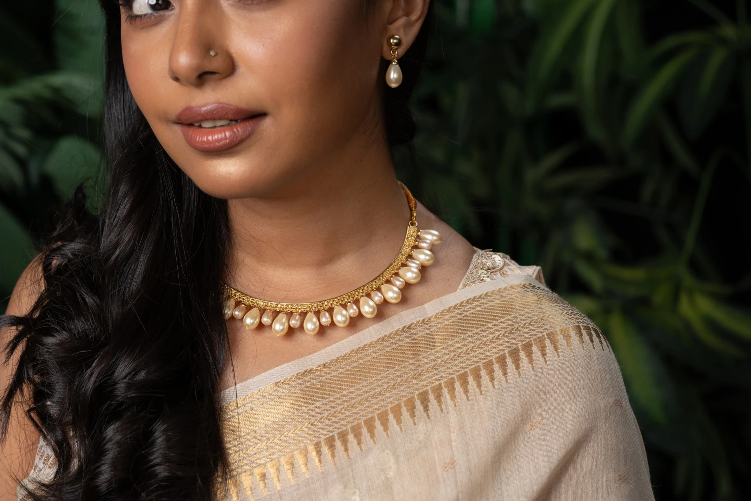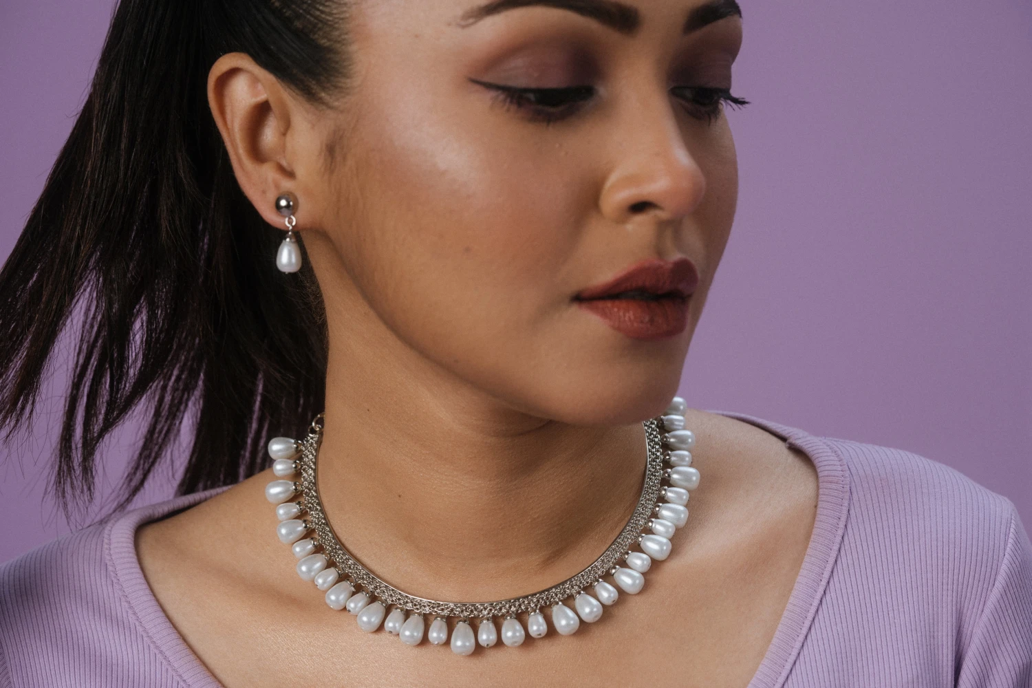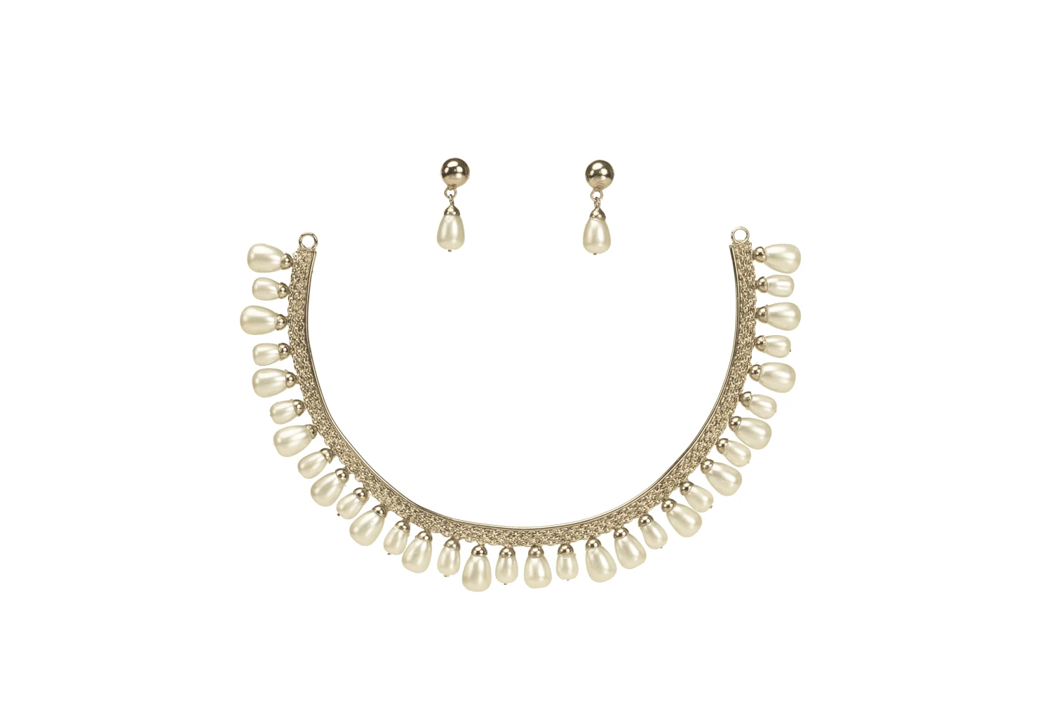 Brass-made silver platted with synthetic pearls.