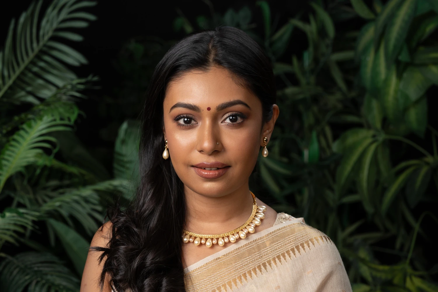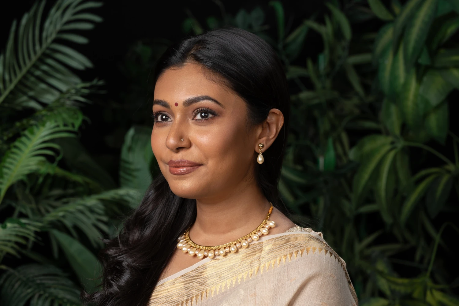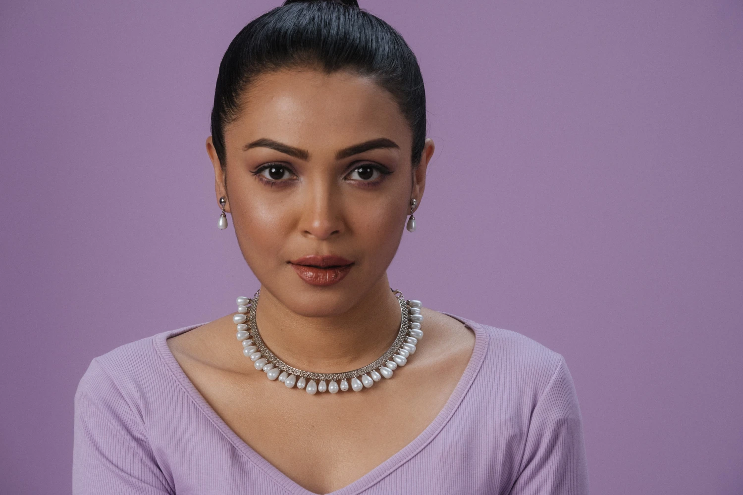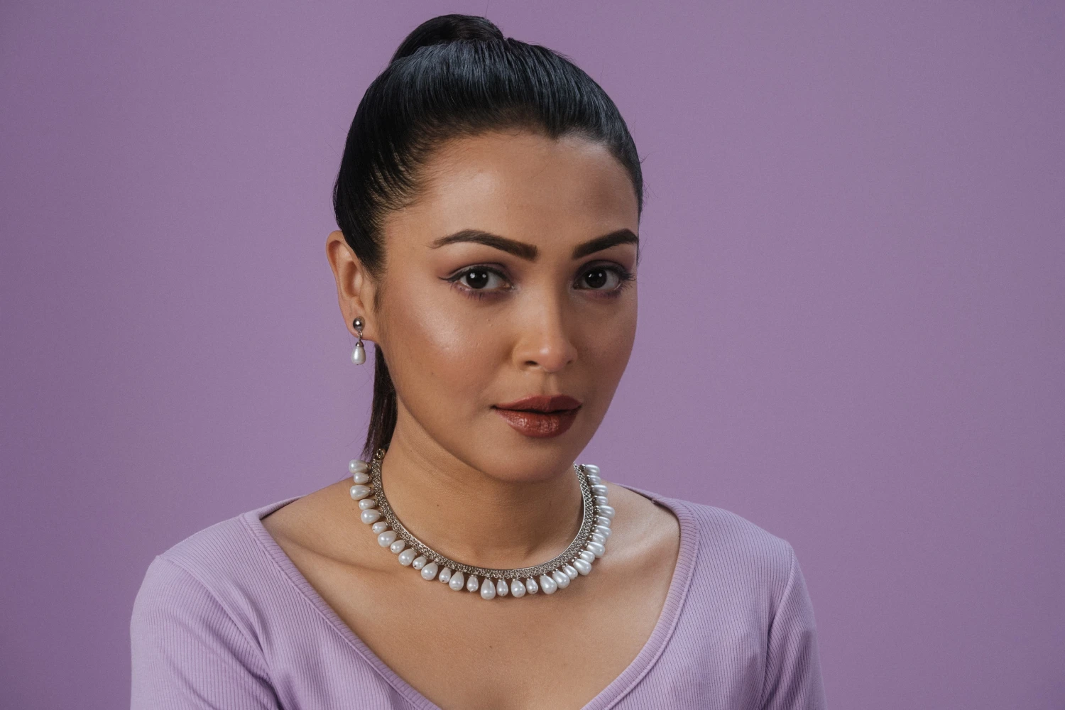 Brass-made silver platted with synthetic pearls.